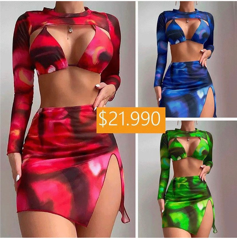 Traje de baño dividido para mujer 4 piezas Tie Dye😄